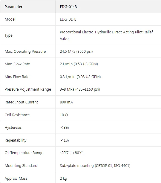 4. Stable Low-Flow Performance: Maintains stable pressure regulation even at low flow rates (minimum 0.3 L/min), ensuring reliable operation in systems with minimal leakage or low pilot flow demands.